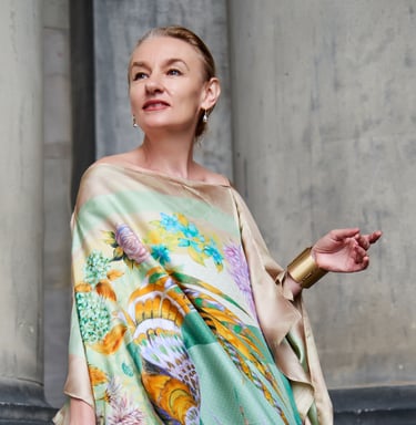 Our mission is to give every woman the opportunity to feel like a Queen in luxurious clothes and accessories from our brand. Even the most modest appearance can be transformed by beautiful silk clothes with exquisite exclusive designer prints.